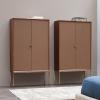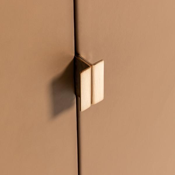 Minimaliste et sophistiquée. Des adjectifs qui caractérisent parfaitement l’armoire Delina. Un piètement métal tout en finesse couleur moka, un cadre en noyer, des portes recouvertes de cuir véritable et un aménagement intérieur fonctionnel…