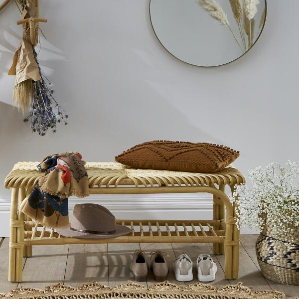 Apportez une touche bohème à votre intérieur avec ce banc conçu en canne et corde de rotin. Utile, il trouvera facilement sa place au salon, au jardin, dans l?entrée ou encore dans une chambre.