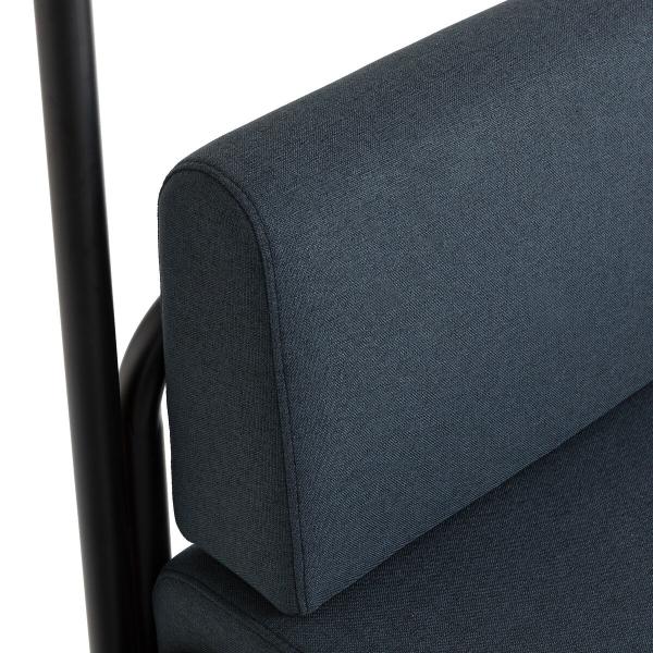 - 1 coussin d'assise et 1 coussin de dossier épais garnis de mousse polyuréthane densité 25kg/m3, housse coloris bleu pétrole