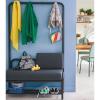 - Banc d'entrée qui offre 4 patères fixes et 1 étagère ajourée dans le bas