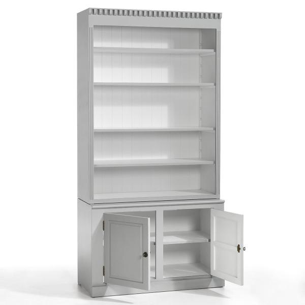 La bibliothèque Aria. Classique et chic, cette bibliothèque offre un beau volume de rangement : à jouer en bibliothèque ou en vaisselier, dans une cuisine ou une salle à manger.