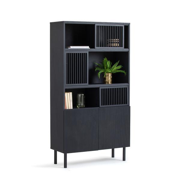 L'armoire bibliothèque de rangement Bilbao. Lignes graphiques et façades en chêne massif pour cette bibliothèque de style contemporain. Très fonctionnelle, elle se caractérise par ses nombreux rangements. Une création La Redoute Intérieurs.