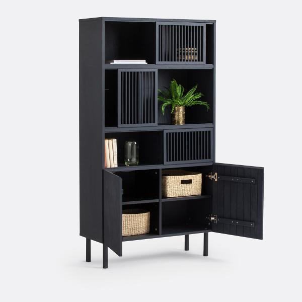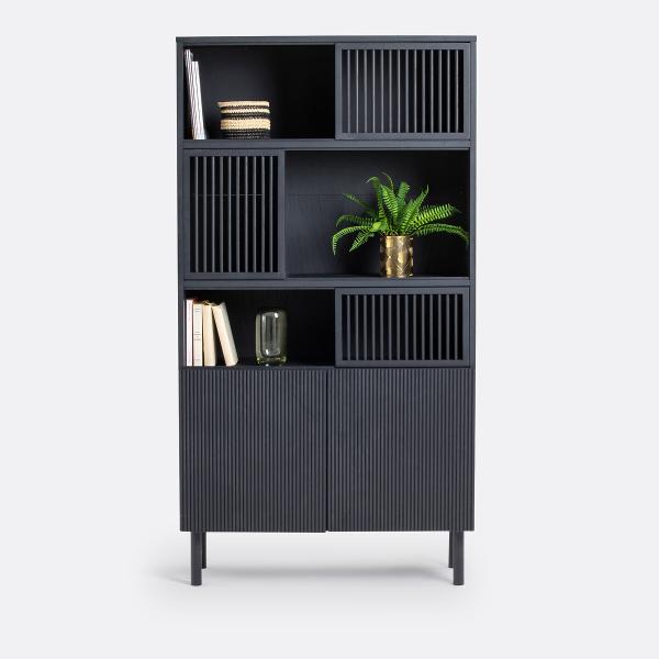 Bibliothèque de rangement chêne, Bilbao Noir T. Unique