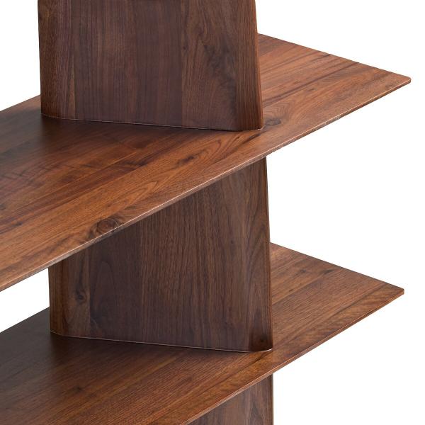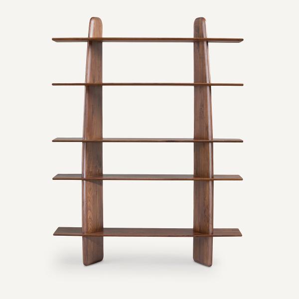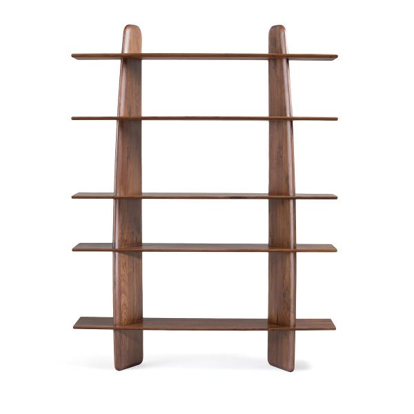La noblesse du noyer massif associé à une silhouette organique font de Sculpta une bibliothèque contemporaine à l’aspect sculptural. Les montants verticaux sont travaillés en ailes d'avion aux bord chanfreinés.Les cinq étagères fixes sont également chanfreinées et leurs extrémités droites permettent d'accoler plusieurs modules. Une exclusivité signée AMPM.