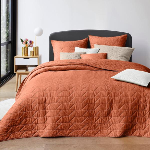 Boutis matelassé pur coton, Zig Zag Scenario Orange cuit 230x250 cm