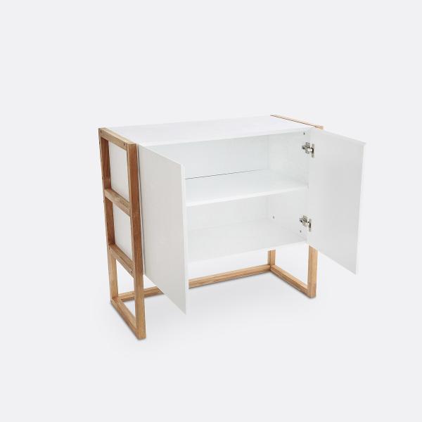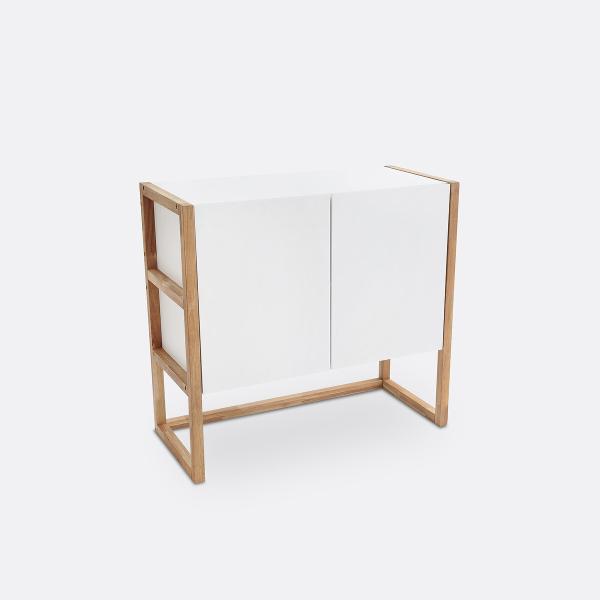 Le buffet 2 portes Compo. Style scandinave, un mariage chêne massif huilé et de MDF blanc pour le buffet 2 portes Compo à associer aux autres meubles Compo.