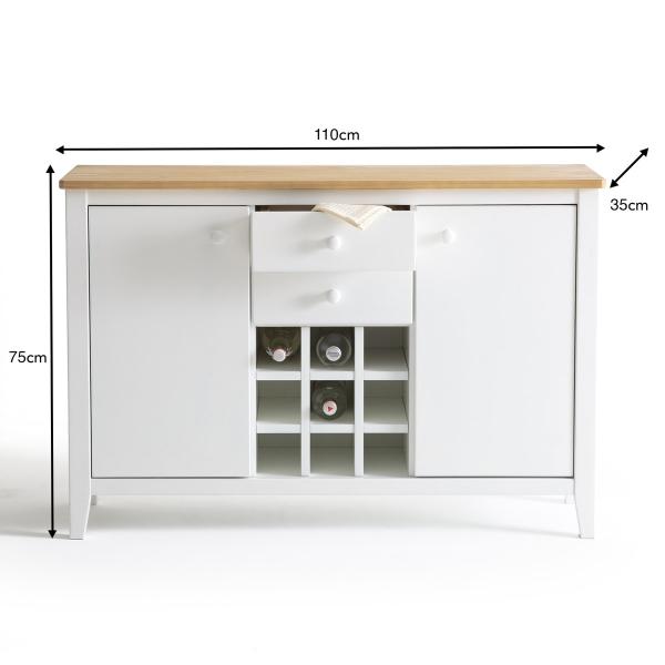 Le buffet Alvina. Le meuble gain de place par excellence, très pratique dans une cuisine avec ses 2 portes, 2 tiroirs et son casier à bouteilles !