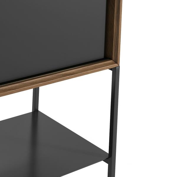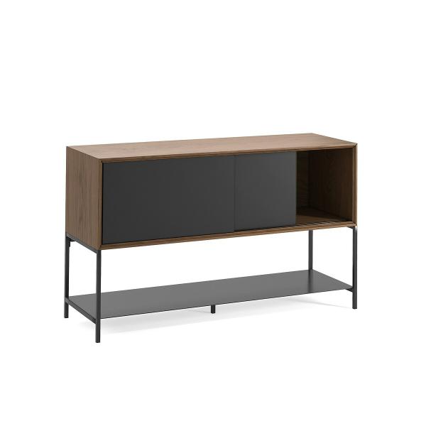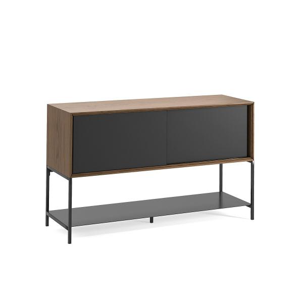 Le buffet Mambo. Un design emprunté aux fifties pour ce buffet qui mixe avec brio, la chaleur d'un très beau plaquage noyer et la rigueur du métal.