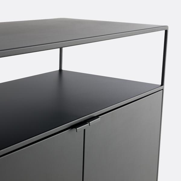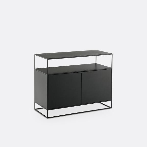 Esprit industriel réinterprété. Sa structure en métal montée sur un piètement aérien et graphique transforme ce buffet de rangement en véritable objet décoratif et sculptural. Une création La Redoute Intérieurs.Description