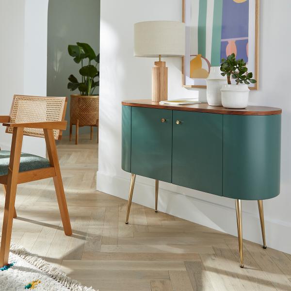 Buffet vintage TOPIM. Magnifique inspiration vintage pour ce buffet-bar « haricot » qui emprunte son design arrondi aux années 50.