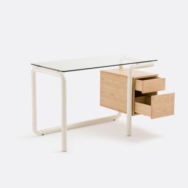 Les formes tubulaires font leur grand retour en déco. Le bureau Tolora s'inscrit dans cette tendance rétro et très inspirante. Un grand plateau en verre épuré. Un caisson pratique et fonctionnel. C'est une création La Redoute Intérieurs.Description
