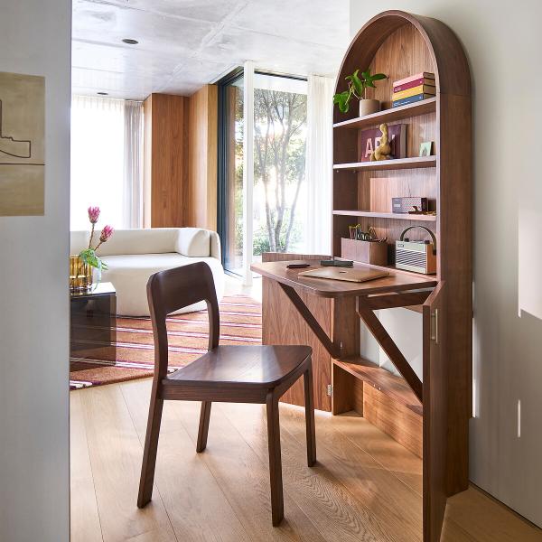 Le bureau Marcela fait partie de notre collection Les Ingénieux. Des créations pleines d’idées pour rendre la vie plus simple et le quotidien plus beau, imaginées par nos designers à Roubaix.Design en arche et bois foncé, un mariage d'inspiration vintage pour le bureau bibliothèque Marcela. Élégant, discret et hyper fonctionnel, ce bureau aux airs de bibliothèque dissimule un bel espace de travail. Une touche sophistiquée et très contemporaine pour tous les intérieurs.
