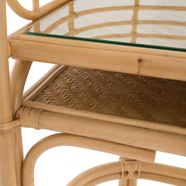 - Étagère et plateau en contreplaqué recouvert de bambou tressé