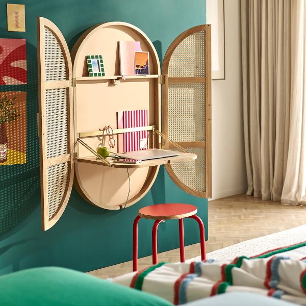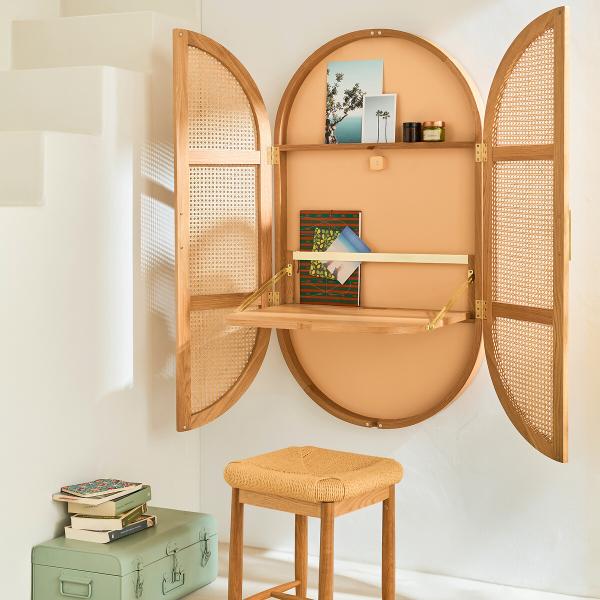 Le bureau incognito Mathéo fait partie de notre collection Les Ingénieux. Des créations pleines d’idées pour rendre la vie plus simple et le quotidien plus beau, imaginées par nos designers à Roubaix.Mathéo, le bureau incognito, pour travailler et tout oublier. Un mariage élégant de matériaux (chêne FSC® et cannage de rotin) pour un espace de travail aussi joli que bien pensé.