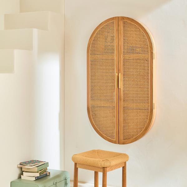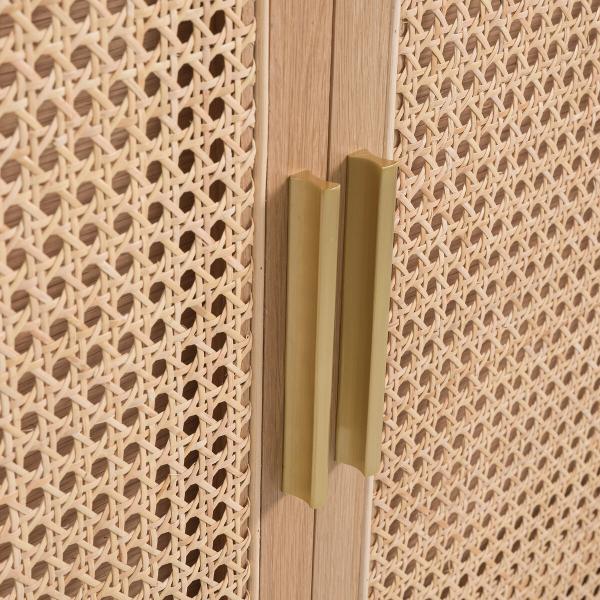 - 2 portes en chêne et cannage de rotin, finition vernis nitrocellulosique