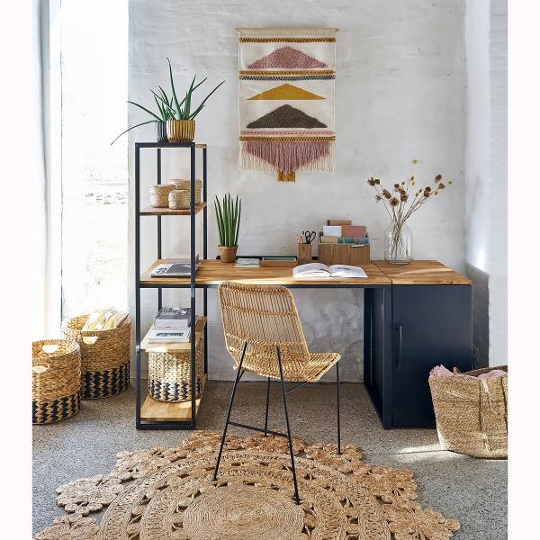 Un meuble de style industriel en chêne massif abouté et métal, qui réunit 2 meubles en un, et qui associe des lignes contemporaines à une capacité de rangement exceptionnelle, voici le bureau-bibliothèque Hiba. Une création la Redoute IntérieursDescription