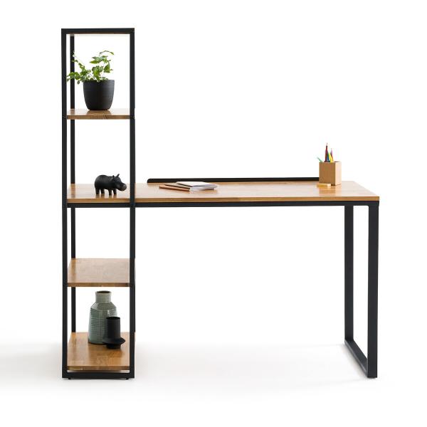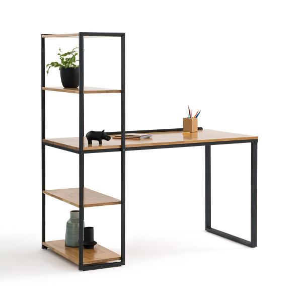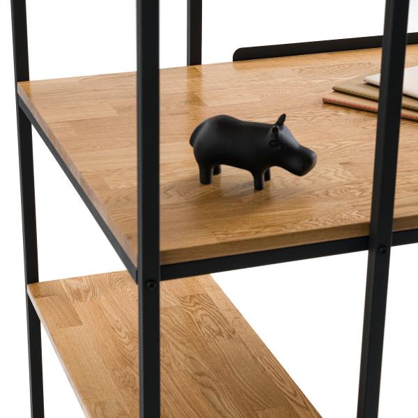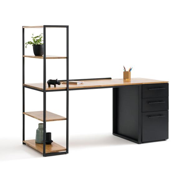 Bureau-bibliothèque chêne et métal, Hiba Chêne/noir T. Unique