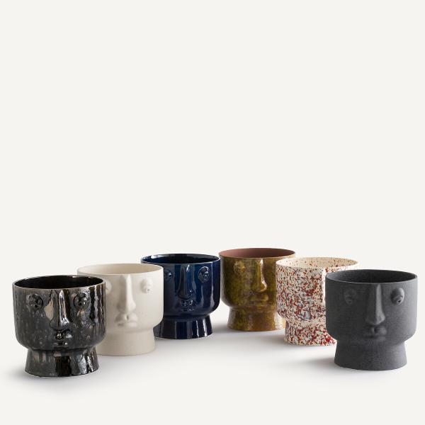 Un mariage entre forme et matière. Artisanal et ultra-contemporain, le cache-pot Lesego emprunte les traits d'un visage paisible et sculptural. Fabriqué à la main au Portugal, chaque pièce est unique.Description