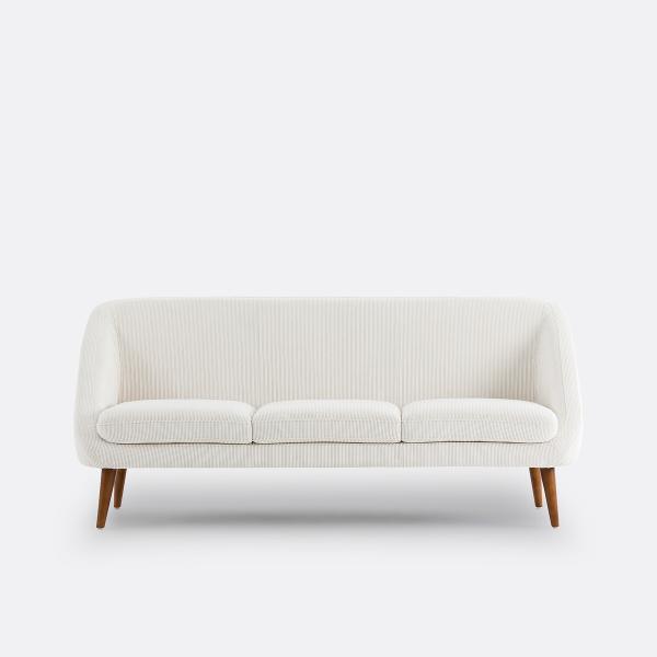 Canapé 3 places, velours côtelé, Semeon Ecru 3P