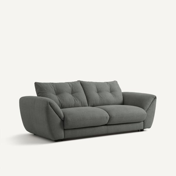 Canapé 3P convertible coton/lin, Edgar Anthracite 3P