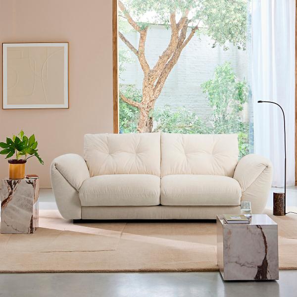 Canapé 3P convertible velours chenille, Edgar Blanc 3P