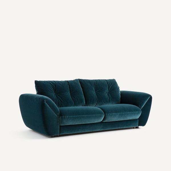 Canapé 3P convertible velours, Edgar Bleu paon 3P