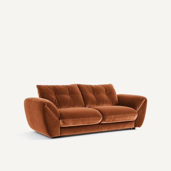 Canapé 3P convertible velours, Edgar Caramel 3P