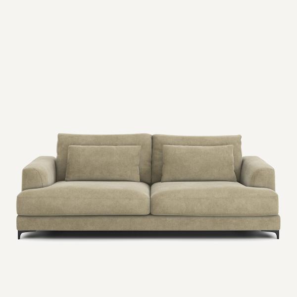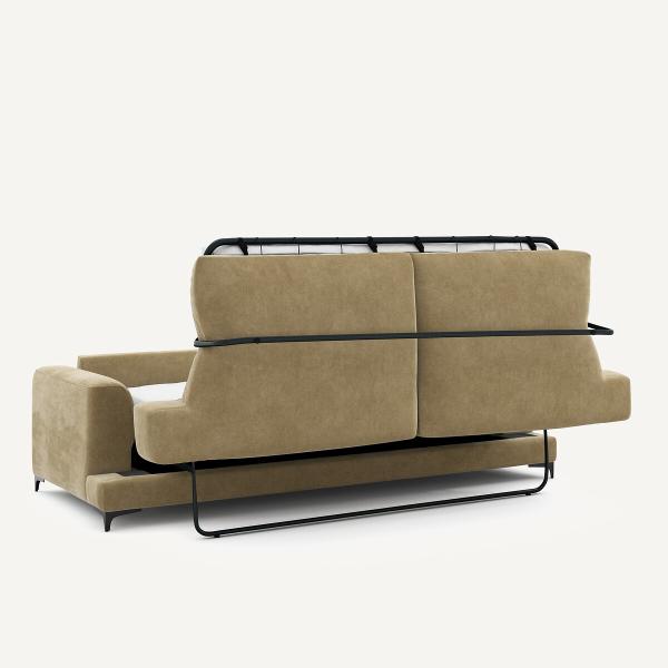 Canapé 4P convertible velours stonewashed, Marsile Ficelle 4P