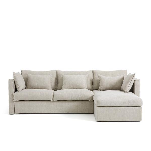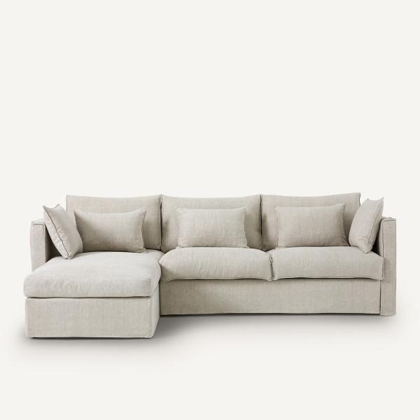 Canapé angle conv. reversible coton/lin, Camille Beige Réversible
