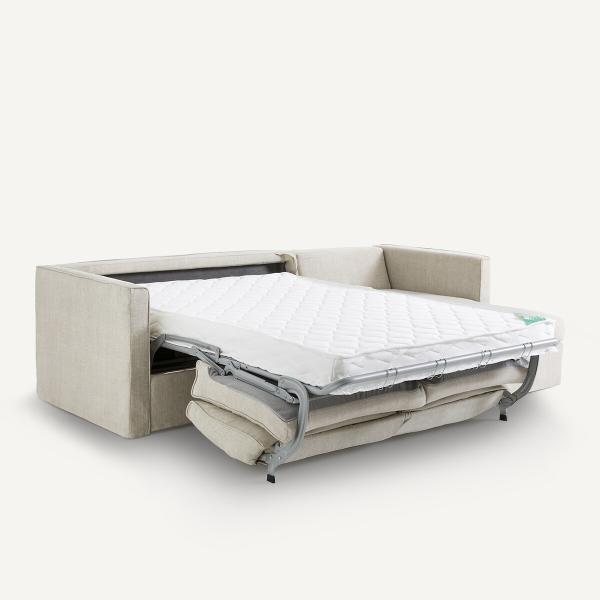 - La mécanique du convertible est composée d'un sommier 2 plis avec grille et sangles en suspension