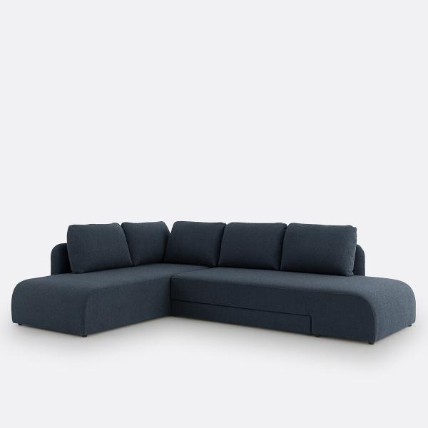 Canapé angle convertible bouclette, Gina Bleu Droit