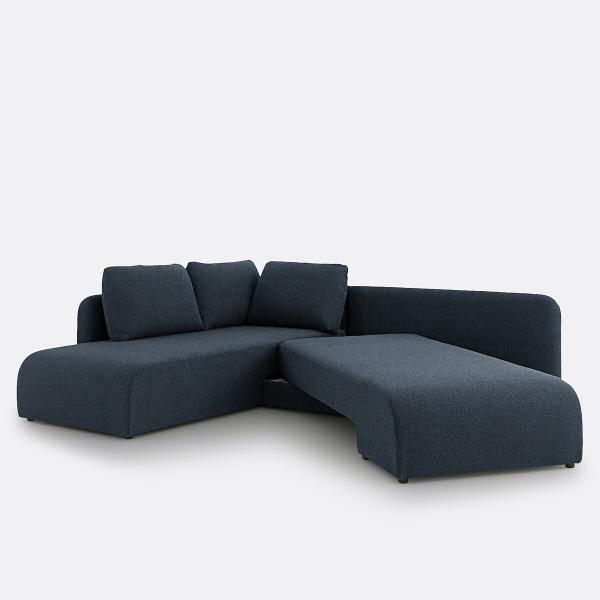 Canapé angle convertible bouclette, Gina Bleu Gauche