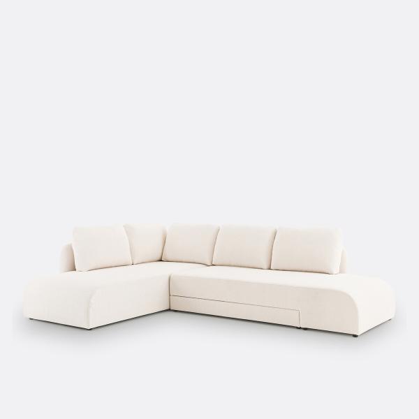 Canapé angle convertible bouclette, Gina Ecru Droit