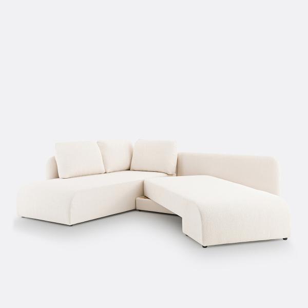 Canapé angle convertible bouclette, Gina Ecru Gauche