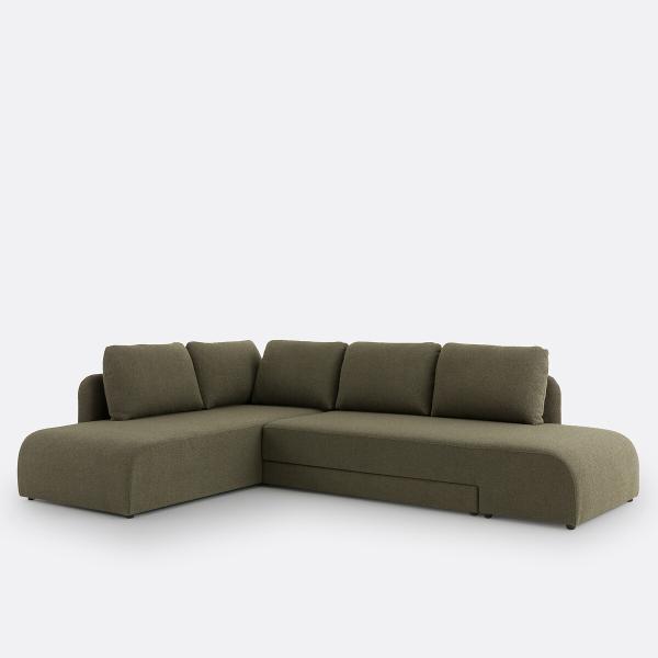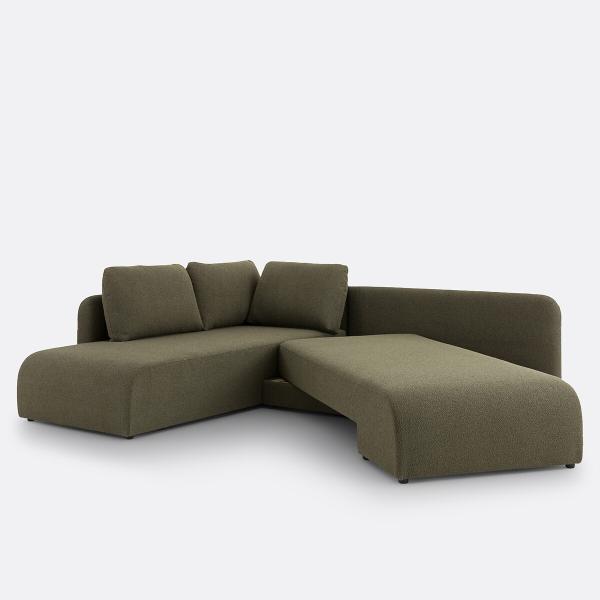 Canapé angle convertible bouclette, Gina Vert Gauche