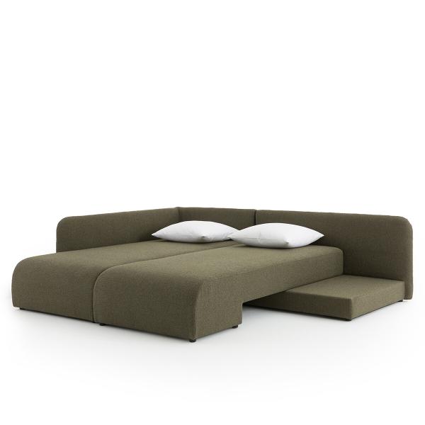 - L'une des parties pivote afin d'offrir un grand couchage de 160 x 186 cm