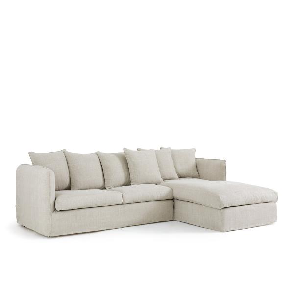 Canapé angle convertible coton/lin, Néo Chiquito Beige Gauche