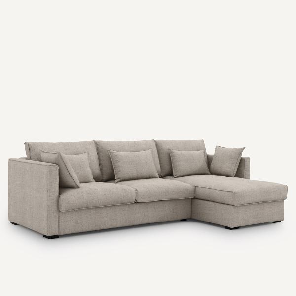 Canapé angle convertible lin moucheté, Camille Naturel Réversible