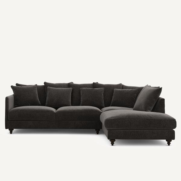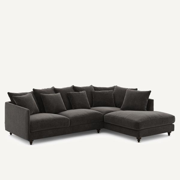Canapé angle convertible velours chenille, Lazare Basalte Droit