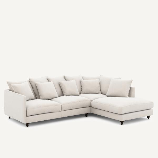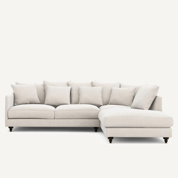 Canapé angle convertible velours chenille, Lazare Blanc Droit