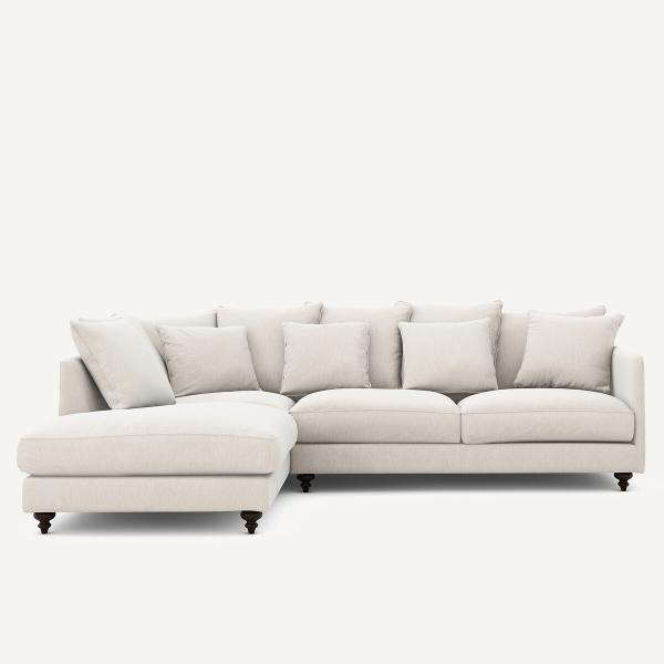 Canapé angle convertible velours chenille, Lazare Blanc Gauche