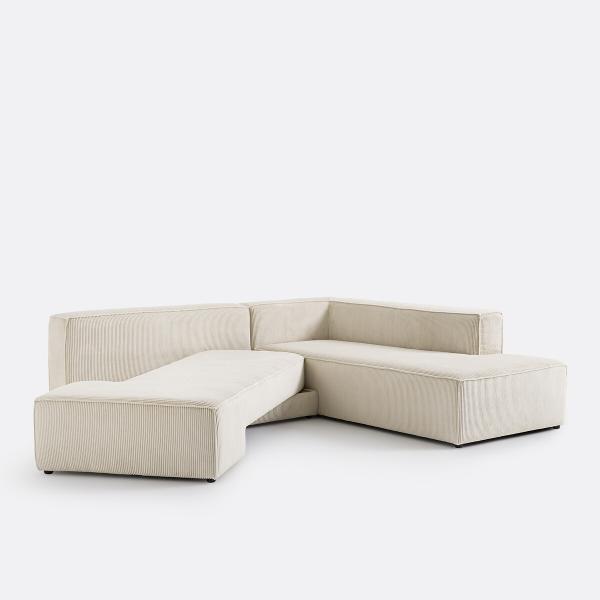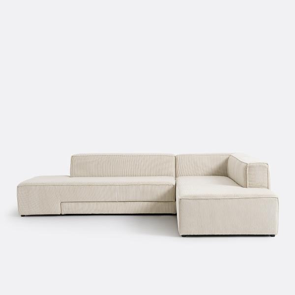 Canapé angle convertible, velours côtelé, Ginosa Ecru Gauche