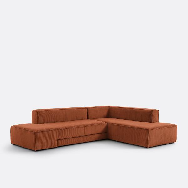 Canapé angle convertible, velours côtelé, Ginosa Terracotta Droit