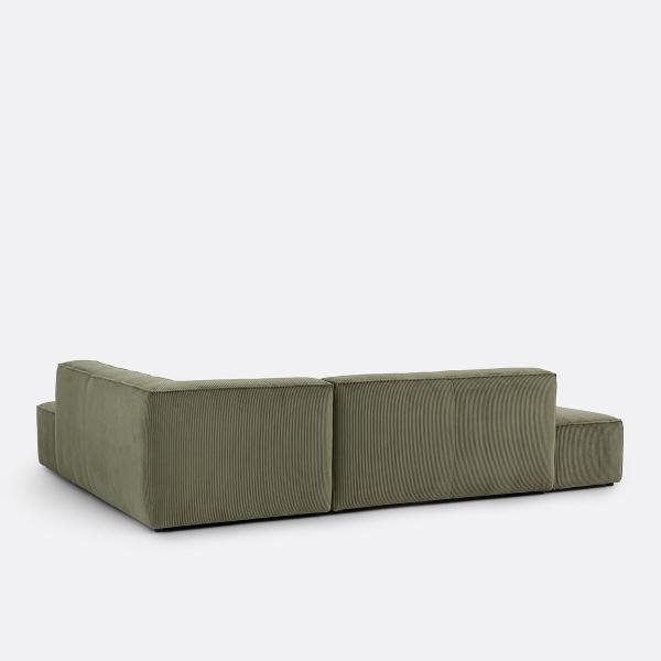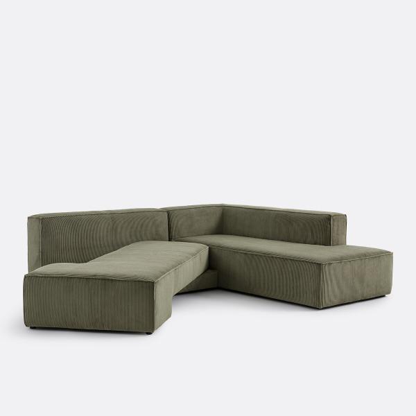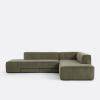 Canapé angle convertible, velours côtelé, Ginosa Vert Gauche