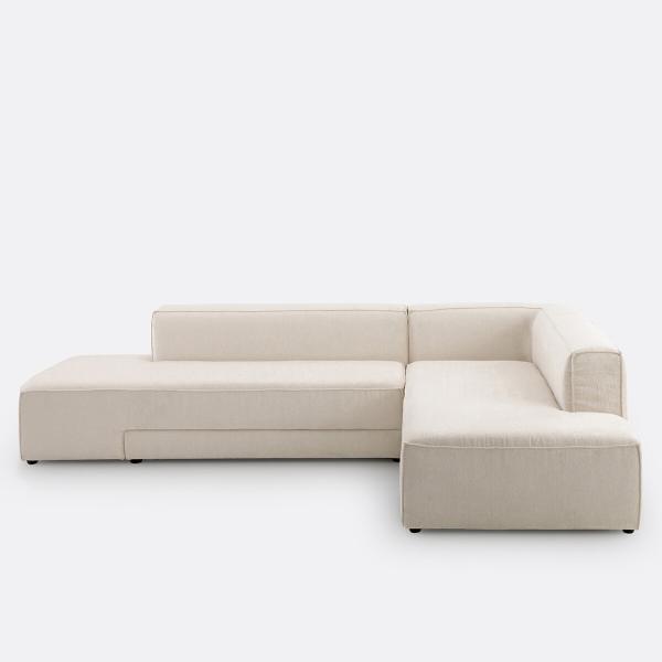 Canapé angle convertible velours texturé, Ginosa Ecru Droit
