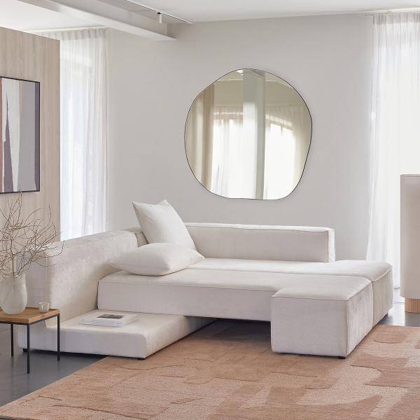 Envie d’un cocon dans le salon ? Voici Ginosa : un canapé confortable et convivial fabriqué en France. Son volume, sa profondeur d’assise et son revêtement texturé sont directement inspirés des 70’s.Côté fonctionnalité : il se transforme en couchage d’un simple pivotement. Pratique non ? Et c’est une création La Redoute Intérieurs.