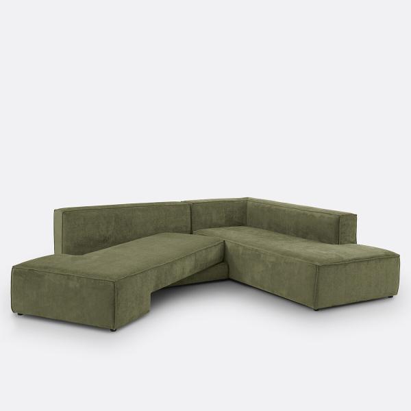 Canapé angle convertible velours texturé, Ginosa Kaki Gauche