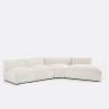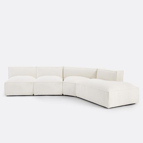 L'ensemble modulable Seven. 1 module chauffeuse, 1 module angle ouvert et 1 module récamière droite pour créer un salon pile dans l'esprit des Seventies.Les modules s'accrochent entre eux au niveau de la base par un système de pinces crocodiles et de picots. Une fois fixés, les modules ne bougent plus. Ils peuvent se séparer facilement en soulevant le module qui n'a pas la pince crocodile pour le désolidariser des autres. Fabriqué en France.