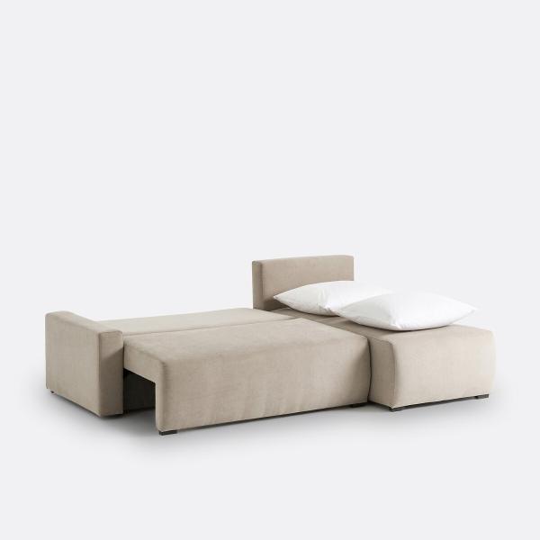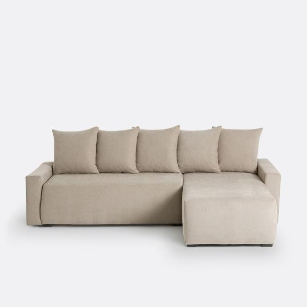 Sobre, intemporel, fabriqué en Europe. Le canapé d'angle convertible Santiago se marie à tous les intérieurs et peut devenir lit d'appoint. Parfait pour accueillir des invités. Il cache un coffre de rangement sous son assise.Confort d'assise : équilibré