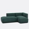 L'ensemble modulable Seven. 1 module méridienne et 1 module récamière pour créer un salon pile dans l'esprit des Seventies.Les modules s'accrochent entre eux au niveau de la base par un système de pinces crocodiles et de picots. Une fois fixés, les modules ne bougent plus. Ils peuvent se séparer facilement en soulevant le module qui n'a pas la pince crocodile pour le désolidariser des autres. Fabriqué en France.